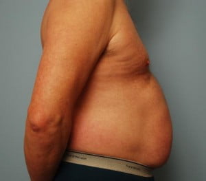 This patient underwent liposuction of his abdomen and flanks. On the abdomen 1350cc of fat was removed. On each flank 1300cc was removed for a total of 3950cc. I think he obtained a nice result. His remaining abdominal contour is due to internal fat which can only be improved by weight loss.