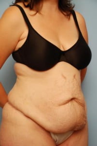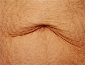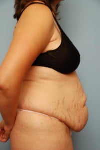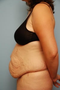 This young mother of three's abdomen underwent severe deterioration due to pregnancy, including a large ventral hernia. Following a full tummy tuck with repair of the hernia and a mesh overlay to prevent further hernia she gained significant improvement in appearance and abdominal wall strength.  Notice too the feminine post operative appearance of her belly button.