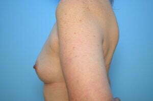 This lovely patient is tall and therefore larger implants are appropriate. However, she did end up with a small amount of inframammary fold descent on the right side. This is when the fold under the breast drops down a small amount and causes the nipple areolar complex to elevate. In her case it doesn't bother her and thus we didn't fix it. However, if need be it is easily fixed. I've tried many techniques to prevent this but unfortunately it is due to the quality of the patient's tissues.