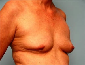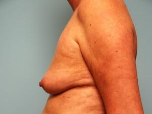 This patient underwent a right breast lumpectomy followed by radiation therapy over ten years ago for breast cancer. She desired improvement in the appearance of her right breast with a matching procedure on the left breast.