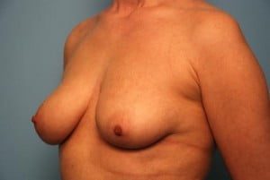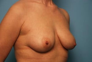 This lovely patient with breast asymmetry wanted more youthful appearing breasts. With the use of low profile implants, to help fill the upper pole of the breast, and circumferential breast lift we achieved improved breast symmetry and a more youthful appearance. She didn't want to appear significantly larger. To achieve this we used low profile implants that help fill the upper poles without the added projection.