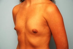 This young mom has very mild constriction or tightness of the inferior part of her breasts. With augmentation this was almost completely improved. Over the next 4 months the lower poles will fill out slightly more leading to an excellent result.