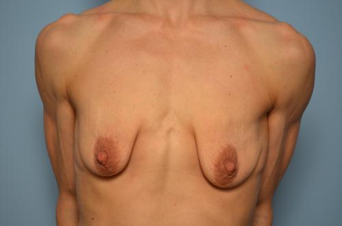 This well build mom with minimal body fat had very little breast tissue but significant excess breast skin.  The combination of an augmentation with implants that keep her proportionate and a breast lift gives her a very nice result.  You'll notice the wide distance between the breasts.  Unfortunately, this could not be improved upon due to the insertion of her pectoralis muscles.