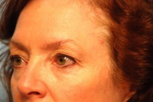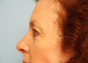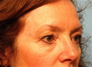 This lovely woman underwent an upper lid blepharoplasty (lift) with removal of skin and muscle. In addition an internal browpexy was performed to prevent the brows from falling.