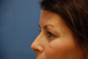 This young 44 year old lost her tired appearance after a conservative upper lid blepharoplasty with just removal of skin and muscle. This was easily done under local anesthetic.