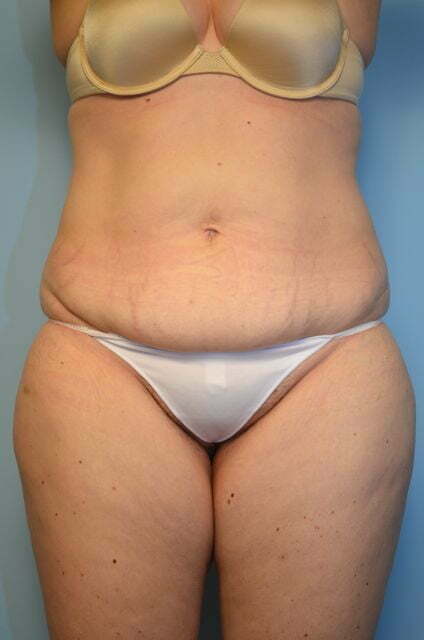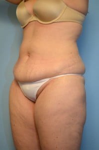 A tummy tuck would have somewhat improved this patient's abdomen. But by adding liposuction of the abdomen, flanks and thighs we made a dramatic improvement in her overall appearance.