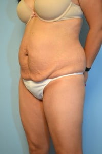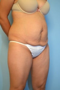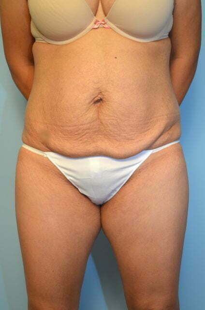 This was a very difficult case in terms of planning. Ideally I would have loved to have done an umbilical float tummy tuck. However, although she didn't have a pannus (fat and skin that hangs below the belly button) below her belly button she had a significant amount of skin laxity or elasticity. In addition her belly button was not in a favorable position. So I performed aggressive liposuction of her flanks an abdomen along with a standard tummy tuck. These pictures are VERY EARLY in her post operative course but you can already see a dramatic improvement in her contour. Although I can tighten the diastasis and fascial weakness, if the muscles are weak a bulge can still occur. Her scar will disappear over the next nine months.