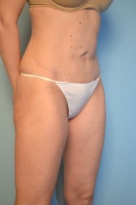 This case illustrates correction of a previously incorrect surgery.  The previous surgeon performed a mini tummy tuck with an exceptionally long incision.  The lower abdominal wall was tightened and skin was removed.  Unfortunately, this resulted in a significant outward bulging of the upper abdomen and fullness above the belly button.  I performed an umbilical float tummy tuck and tightened the entire abdominal wall which corrected her issues.  She will still have a scar that is much higher than I would typically leave but I was restricted by her previous scar.